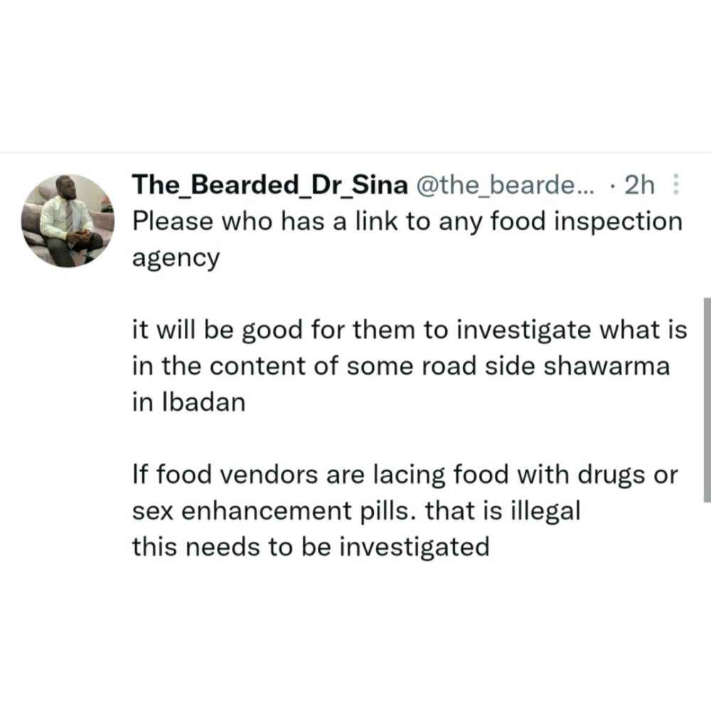 A Nigerian doctor has called for an investigation after two cases of prolonged erection was recorded in men who ate Shawarma.