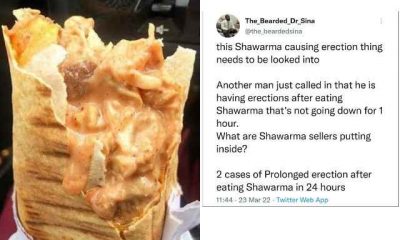 A Nigerian doctor has called for an investigation after two cases of prolonged erection was recorded in men who ate Shawarma. He wondered if the vendors...