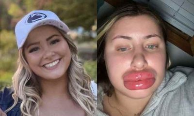 A woman’s lips became extremely swollen after she suffered an extreme allergic reaction to her lip fillers. Kailee Jones, 23, got the injections because she thought...