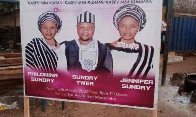 A Nigerian man from Benue State, Mr Sunday Twer, is set to wed two women on the same day. According to the wedding poster shared by...